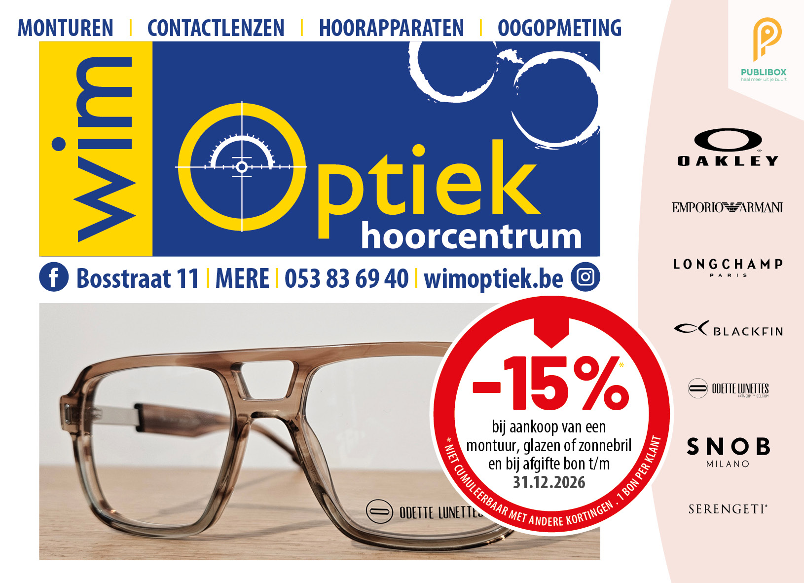 Click to view full image Wim Optiek Wim Optiek Erpe-Mere 15 jaar persoonlijk advies in de juiste keuze van montuur en glazen, met aandacht voor de wensen van de klant. Winkel locaties Wim Optiek Erpe-Mere Bosstraat 11 Erpe-Mere , 9420 , België Routebeschrijving Soortgelijke aanbiedingen Alles bekijken → ♡ Deal Optics Oogwereld Tielt Oogwereld ♡ ♡ Deal Optics Oogwereld Beveren-Waas Oogwereld ♡ ♡ Deal Optics Oogwereld Zwijsen Sint-Niklaas Oogwereld ♡